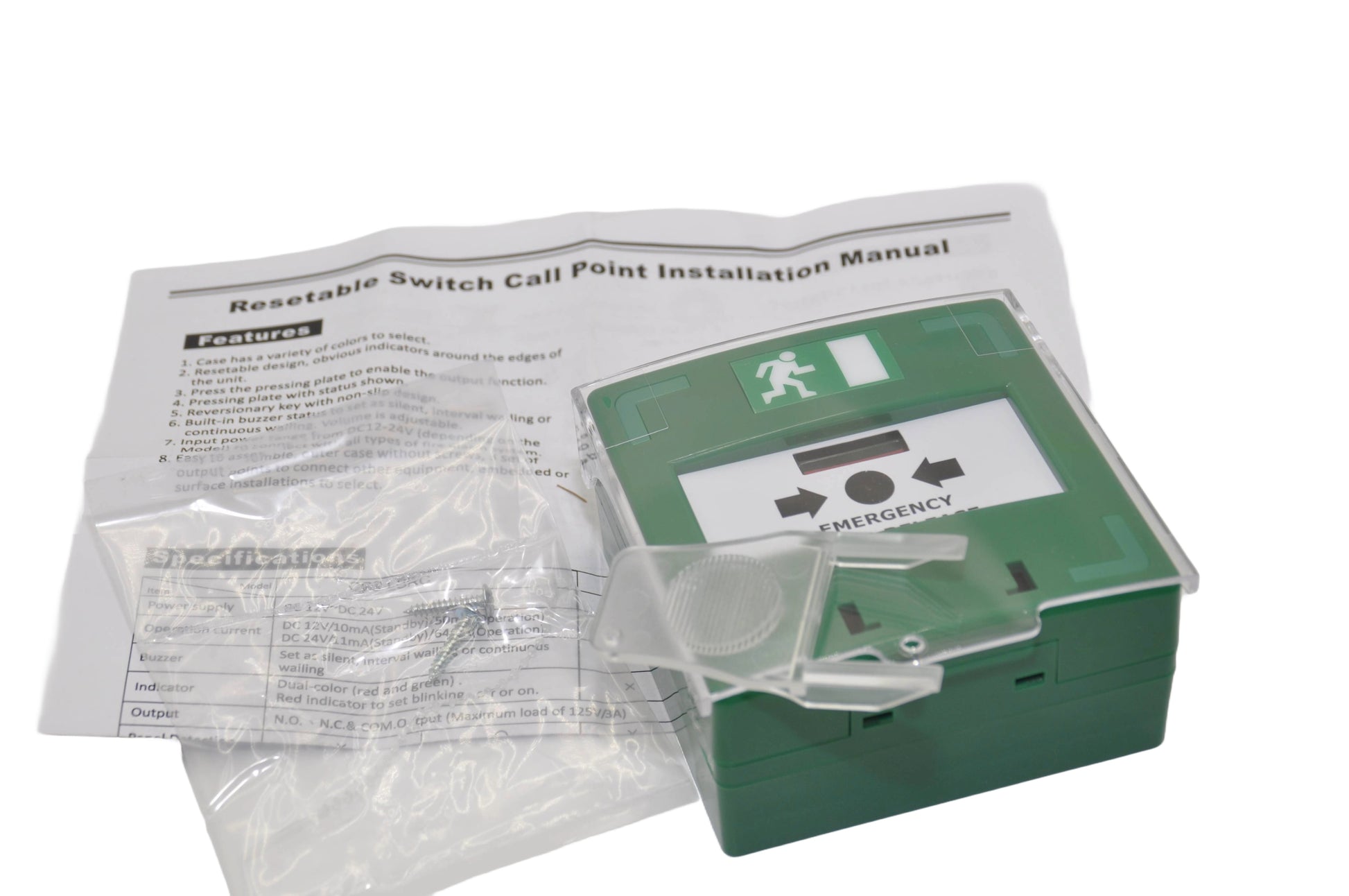 Activation Method: Push plate (resettable with key)